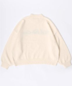 商品名:【胸元にチェーン刺繍】 モヘアライクニット モックネックプルオーバーセーター