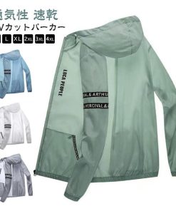 UVカット ロゴ パーカー ラッシュガード ポケットあり 涼しい フード付き メンズ 薄手 ジップアップ 涼感 ラッシュパーカー 日焼け対策 サマーパ
