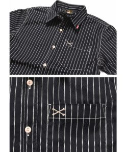 チンストラップや、猫目ボタン、ややロングポイントの襟、左右両裾のマチ&カラカンなどヴィンテージシャツのディテール随所に搭載した拘りを感じさせる一着!
