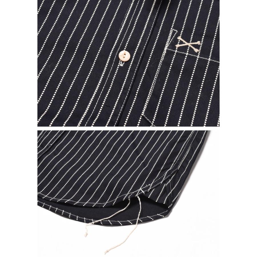 胸ポケットに施されたワンポイントのクロスボーン刺繍や、襟のピスネームもアクセントになっており、シンプルでありながらしっかりと個性のある仕上がりになっています。