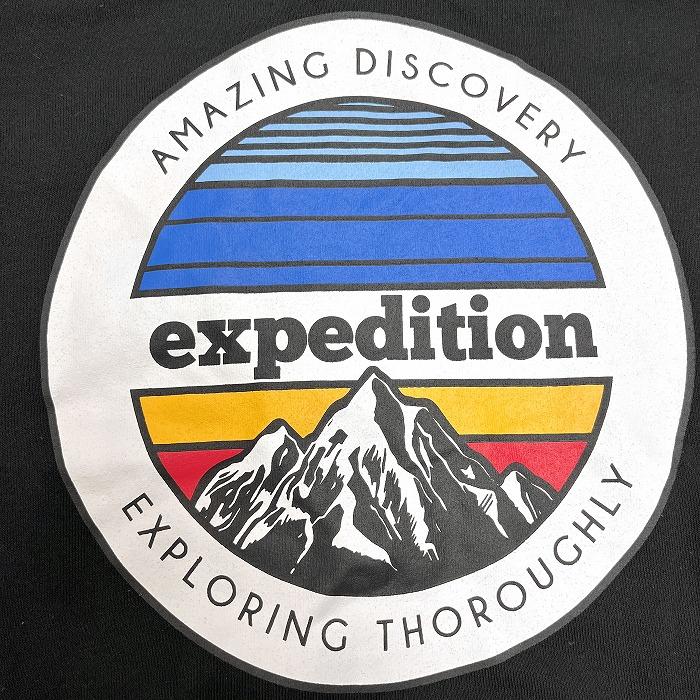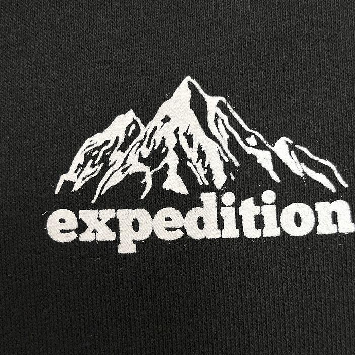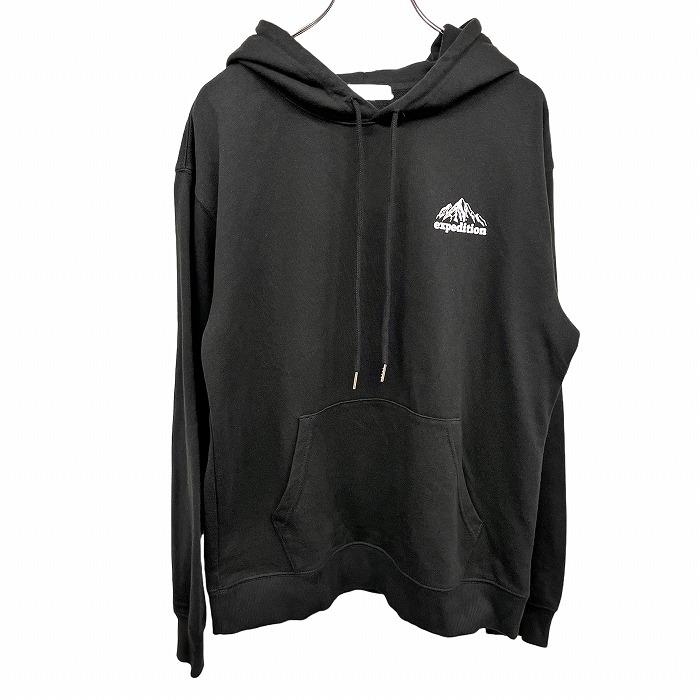 WEGO プルオーバー パーカー スウェット 裏毛 『expedition』 山 両面プリント 長袖 ポリ×綿 M ブラック 黒×白×青×赤×黄 メンズ