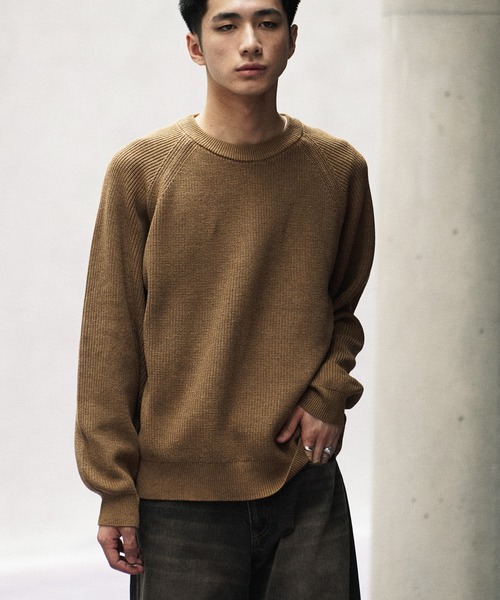 キーワード:セーター ニット メンズ クルーネック 長袖 無地