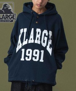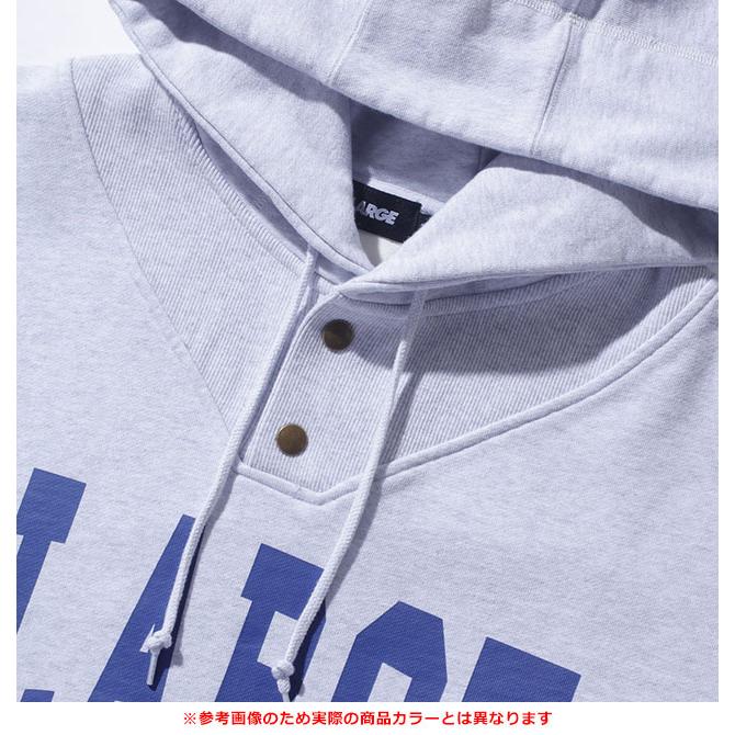 重量感と頑丈さが魅力のXLARGEオリジナル裏毛を使用したフーデッドスウェットシャツです。ボタン仕様のフードや裾の使用などが特徴的なアイテムで、フロント中央に配置したグラフィックもポイント。ラフに着られて、幅広いコーディネートに重宝する1枚をお楽しみ下さい。