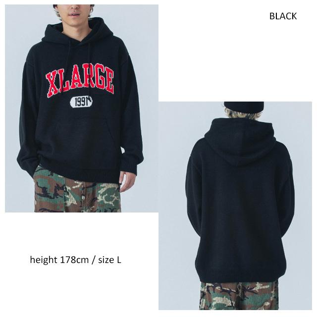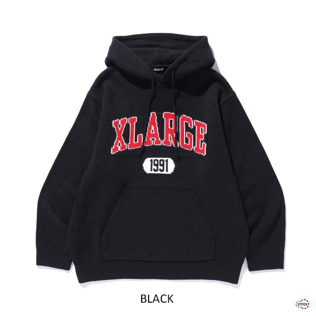 XLARGE エクストララージ COLLEGE LOGO KNIT PULLOVER HOODIE 101251015002 カレッジロゴニットプルオーバーフーディー 長袖 ロゴ 正規取扱店